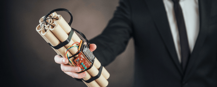 But the giveaway word isn’t forced to be ‘bomb’, any more than the tell-tale shape is always that distinctive black sphere. In real life the bomb could just as easily be a cylinder of blue, red, black, or a number of other colours, and the giveaway word could be ‘propane’, ‘butane’…or simply ‘gas’.