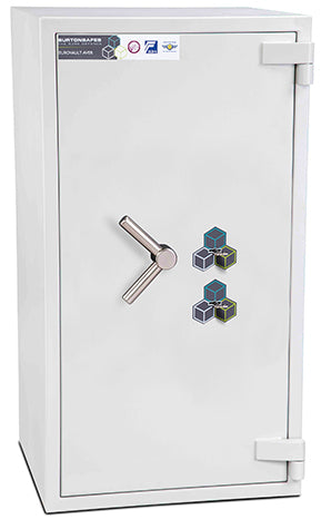 Burton Eurovault Aver Grade 4 Safes have multiple third-party approvals and a £60,000 cash rating. Independently attack tested and certified. Has ECBS approval EN15659 LFS 30P for 30 minutes fire resistance.