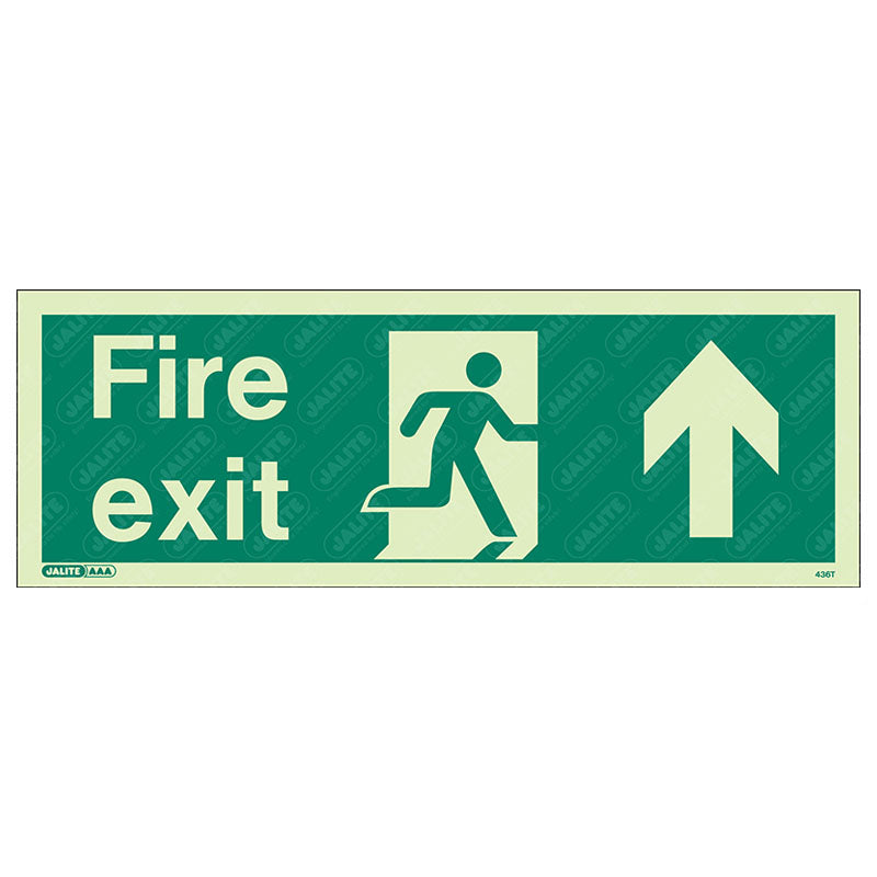 Fire exit man arrow up 340 x 120 Photoluminescent