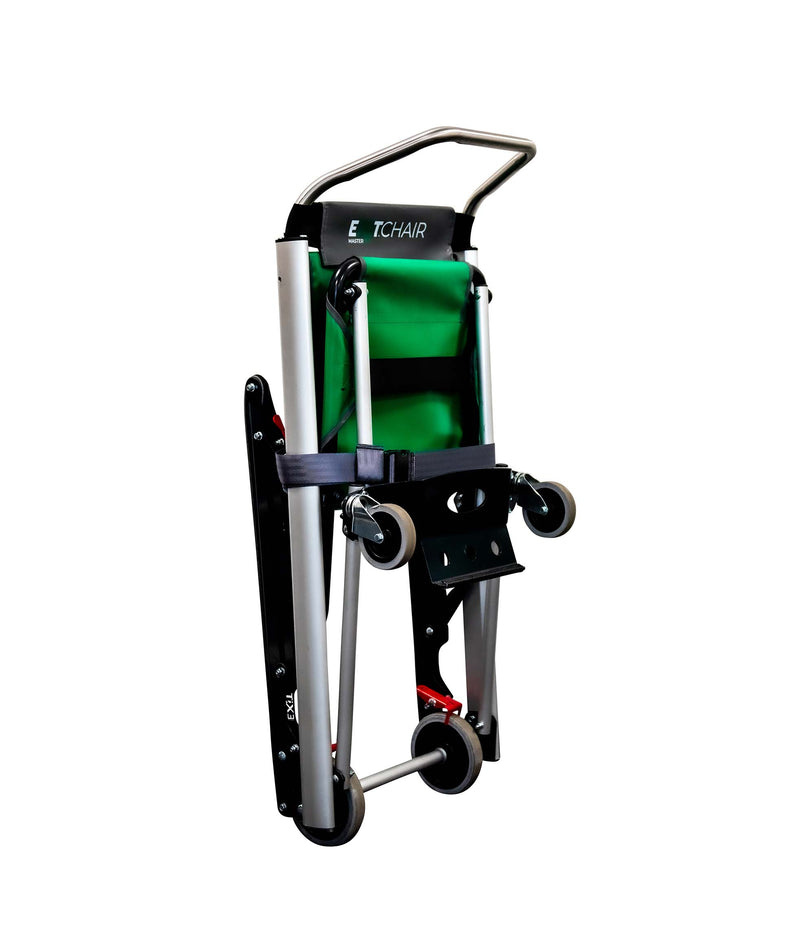 The Exitmaster Versa Evacuation Chair comes with a range of brand new design features to provide ultimate comfort and easy use. The “Stoop-free” and “Free-walk” design allows for comfortable and controlled operation. Alongside this the upright 4-wheel design provides improved control and ease of use on landings, this top class control and comfort allows for a quick and efficient evacuation. The top step safety feature and large footrest also ensure passenger safety and comfort for a seamless evacuation.
