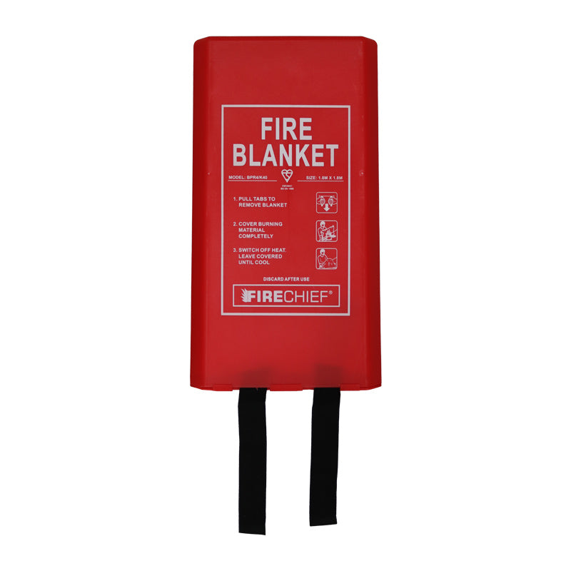 1.8m x 1.8m fire blanket made from K40 weaved twill cloth is contained in a wipeable rigid PVC outer cover which has wall mounting capabilities and fast release pull straps. Also comes with a 5 year warranty.