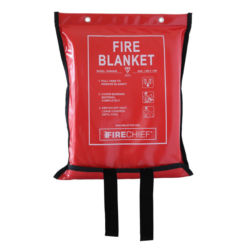 Economy Fire Blanket 1.8m x 1.8m made with K40 weaved twill cloth is supplied in high quality soft PVC packaging with quick release straps and key hole for wall hanging if required. Also comes with a 5 Years Warranty.