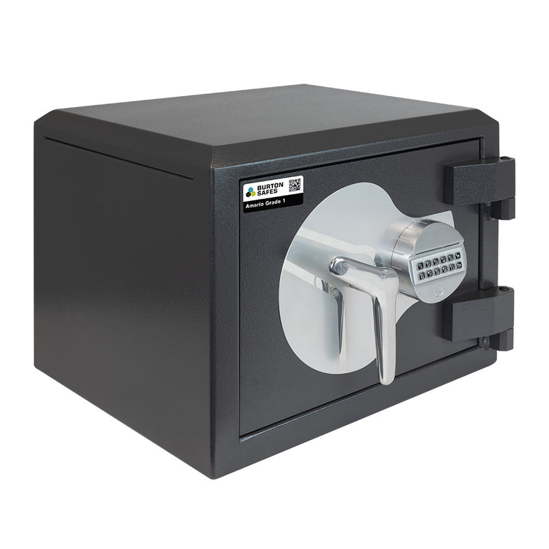 Burton Amario Grade 1 Size 1 Safe is designed for the security of valuable personal belongings. It is independently tested and certified to EN1143-1 Grade 1. It comes available with a top tier security key lock or electronic lock.