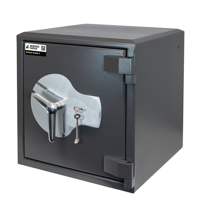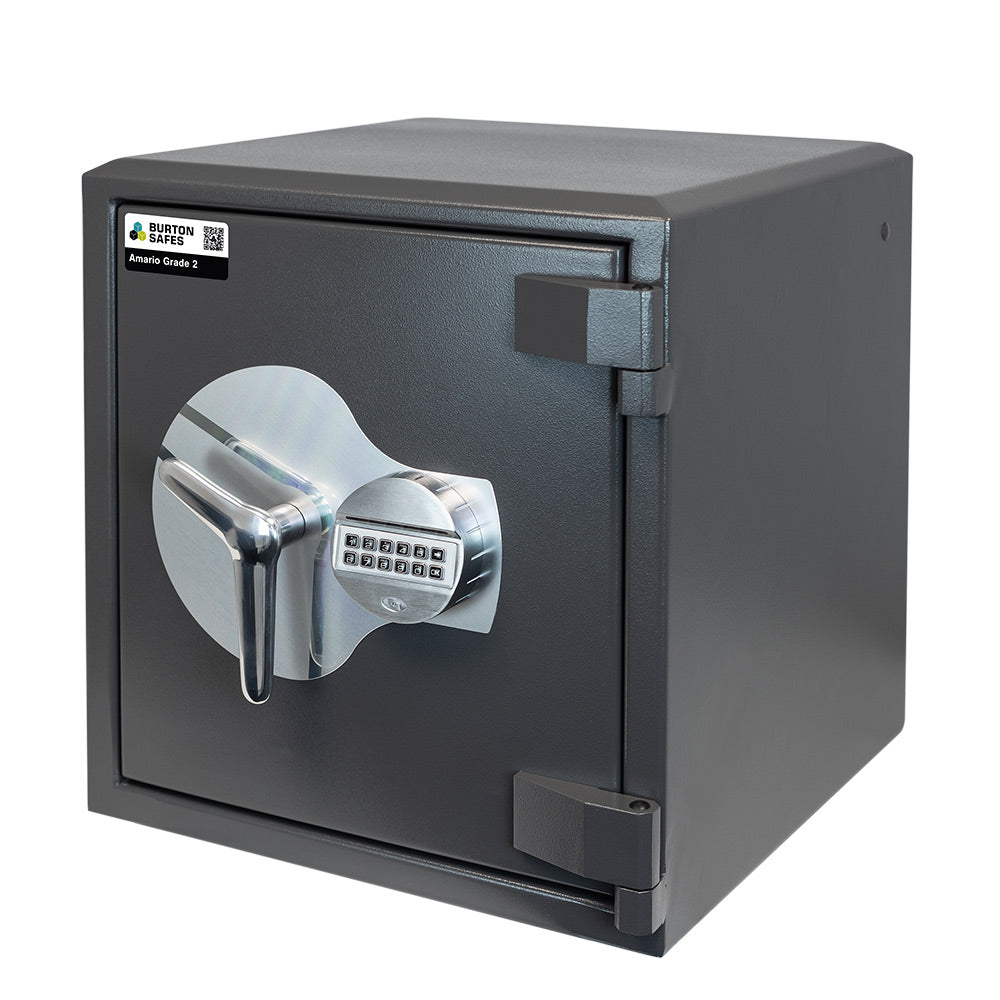 Burton Amario Grade 2 Size 2 Safe is specially designed for the security of valuable personal belongings. It is independently tested and certified to EN1143-1 Grade 2. It comes available with a super secure key lock or electronic lock. With a capacity of 39 litres, it is an ideal mid-sized home safe for cash, jewellery, passports and other important or valuable belongings.