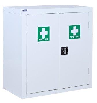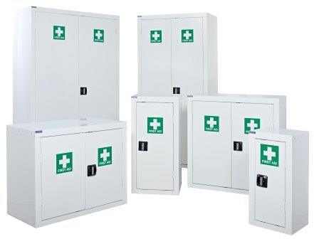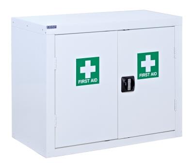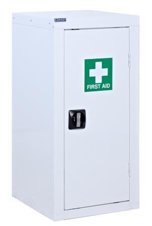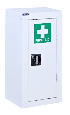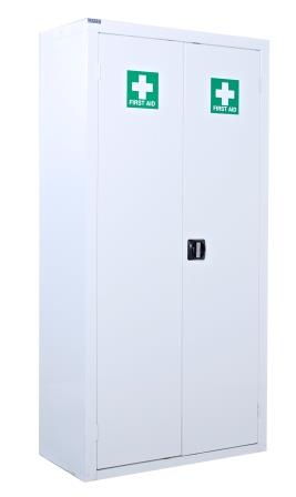 Designed to meet a wide range of first aid requirements these First Aid cupboards are manufactured from high quality steel with a clean anti-bacterial white powder coated finish. An integral liquid tight sump and adjustable spill retaining galvanised shelves provide superior spill control. Rebated doors and quality 2 point lock gives security against unauthorised access.