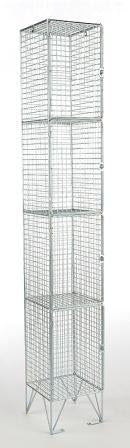 Four Door Wire Mesh Lockers, manufactured with 25 x 25 x 2.5mm welded mesh on an 8mm rod frame. These wire mesh lockers are available in a selection of sizes, as standalone lockers or as nests of Two or three lockers.