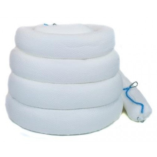 Oil Only Booms 13cm x 3m are for use in quick response situations, absorbing spills of oil – especially in marine environments. Even when saturated, these booms will float on water. Rustproof end rings and carabiner clips allow for easy attachment to create larger barriers.