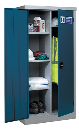 These quality Personal Protective Clothing Cabinets enable the safe and separate storage and control of essential protective clothing in the workplace. Solid steel construction with rebated doors and adjustable shelving to cater for a variety of storage requirements in accordance with PPE at work Regulations 1992 Part 5.
