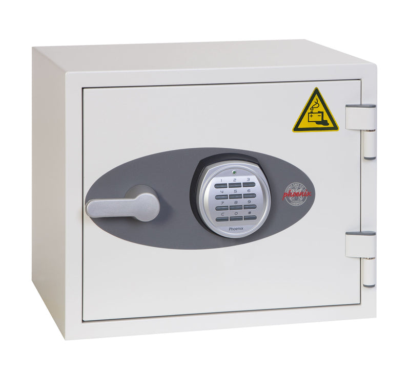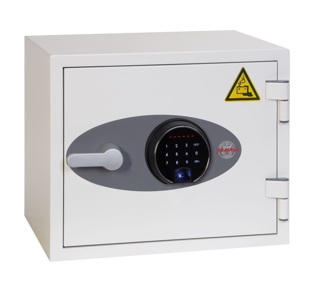 The Phoenix BS1281 Battery Titan is a beautifully designed battery safe with 4 internal key hooks, a pull out drawer, double wall construction for extra strength, Styronite F insulation for heat protection and a bright internal LED for use in the dark. Includes a choice of multiple high security locks, including an advanced fingerprint and keypad lock with storage for up to 32 fingerprints.