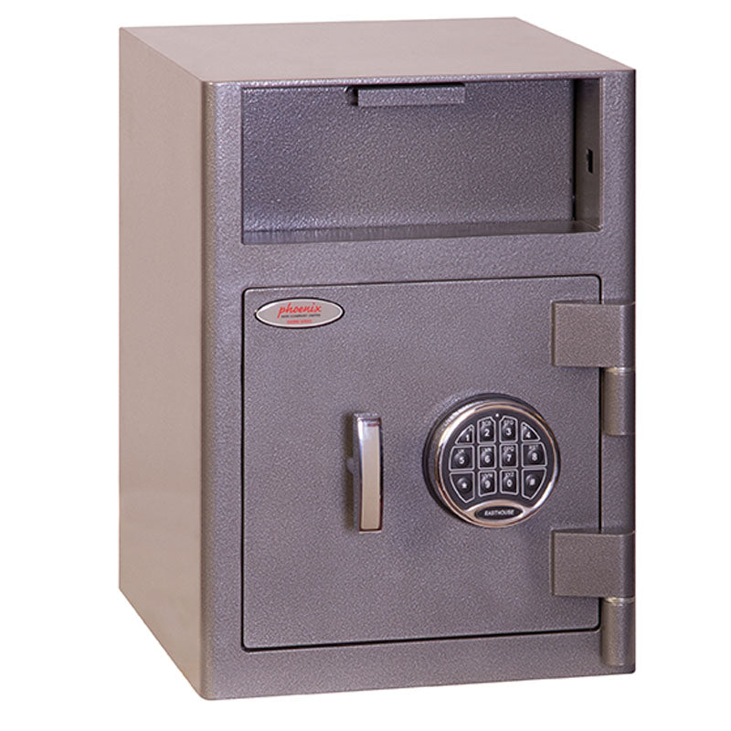 The Cashier Deposit range of safes by Phoenix are front loading deposit safes allowing for 24 hour cash management, with a cash rating of £3,000 and valuables rating of £30,000.