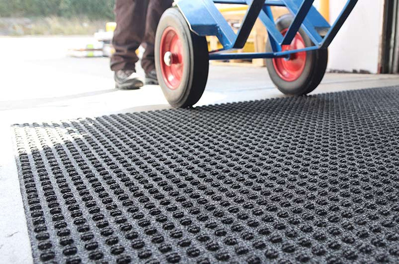The Superdry Heavy Traffic Warehouse Mat has a unique waffle pattern which helps to absorb any moisture or scrape of dirt brought in by forklifts and other workplace vehicles.
